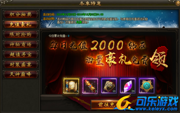 2. 活动期间内,每日充值达指定钻石数额,即可领取充值奖励,可原每日充值奖励叠加领取。