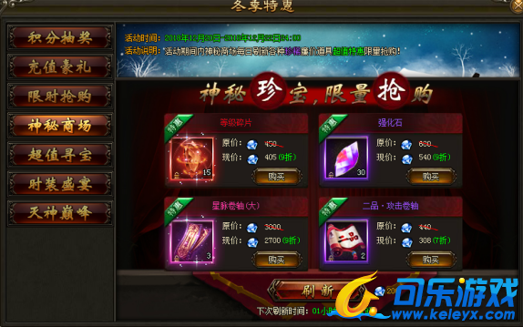 2. 活动期间内,神秘商场每日刷新各种珍稀道具,打折出售限量抢购。