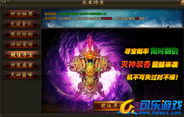 1. 活动期间,王之宝藏可抽取灭神装备,高级装备概率翻倍!活动限时3天,机不可失过时不候