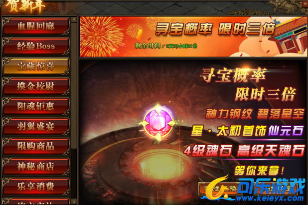 1.活动期间,玩家寻宝概率翻倍,极高几率获得星·太初首饰,仙元石、碧落星空,神力特戒钢纹,高级天魂石以及4级魂石