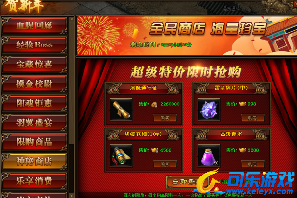 2.神秘商店每2小时自动刷新一次,也可用花费元宝立即刷新;