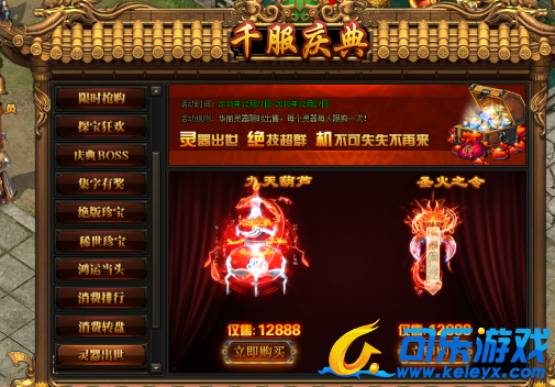 活动内容:活动期间,华丽炫酷灵器限时出售,每个灵器每人限购一次!