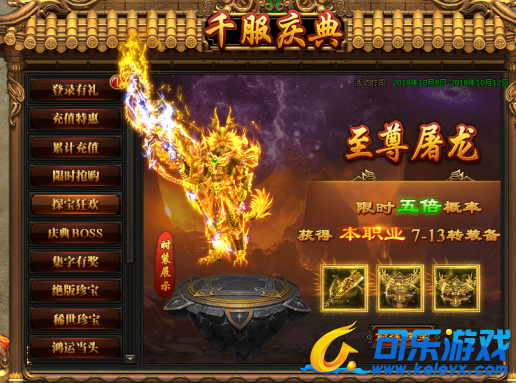 活动奖励:鸿运武器、鸿运战甲、鸿运当头称号、幻形水晶、至尊屠龙碎片
