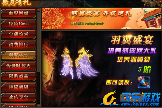 1.活动期间,玩家羽翼只需达到5级,即可领取一定数量的羽毛;