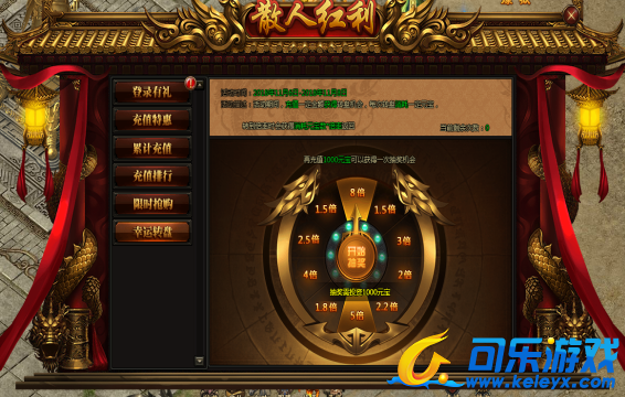 活动规则:活动期间,充值一定金额可获得转盘次数,转到倍率时可活动对应倍率的元宝奖励。
