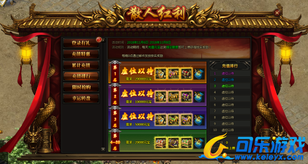 活动规则:活动期间,每天充值达到指定额度即可领取对应档次的奖励。