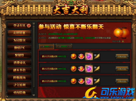 活动规则:活动期间累计充值达到需求时可领取对应奖励