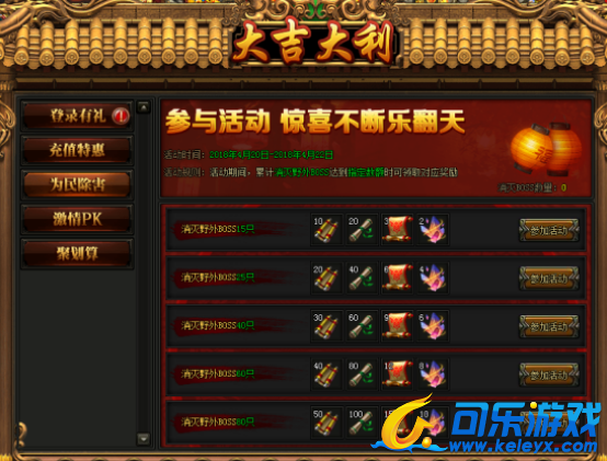 活动规则:活动期间,累计消灭野外BOSS达到指定数额时可领取对应奖励