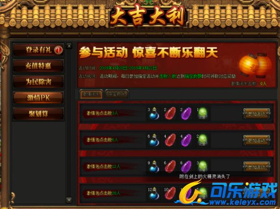 活动规则:活动期间,每日参加指定活动并击败人数达到指定数额时可领取对应奖励