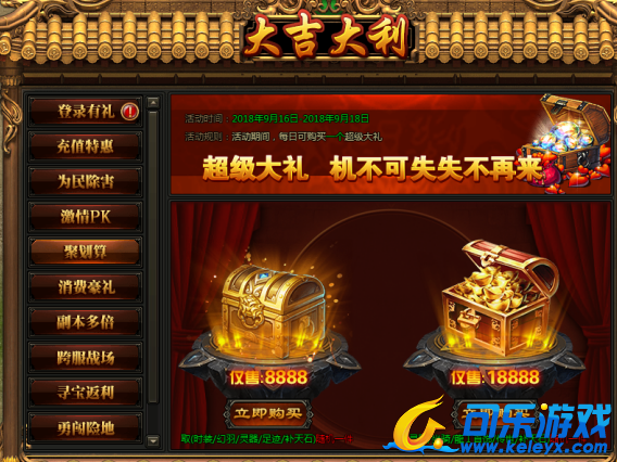 活动规则:活动期间,每日可购买一个超级大礼,机不可失失不再来