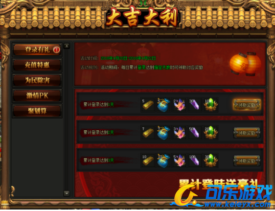 活动规则:活动期间,每日累计登录到达指定天数时可领取对应奖励!