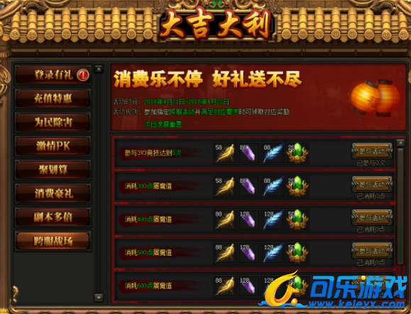 活动规则:参加指定跨服活动并满足对应需求时可领取对应奖励,次日凌晨重置