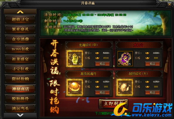 活动说明 : 活动期间,神秘商店倾情促销稀有材料!商店物品每2小时自动刷新(或全商品全部已购后),消耗一定元宝可手动刷新。