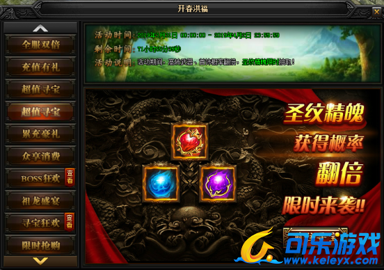 2,活动说明:活动期间,高转武器、首饰概率翻倍,圣纹精魄限时抽取!