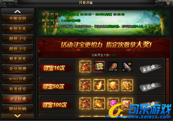 活动说明:活动期间,在龙族寻宝中,寻宝次数达指定次数,即可领取额外大礼。