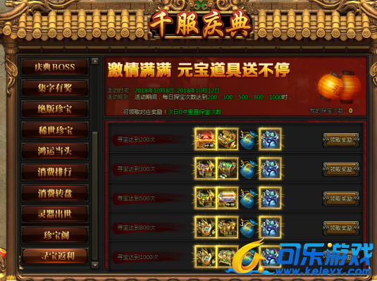 活动内容:活动期间,探宝达到相应次数可领取对应奖励!
