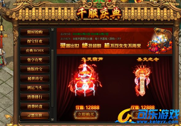 活动内容:活动期间,华丽炫酷灵器限时出售,每个灵器每人限购一次!