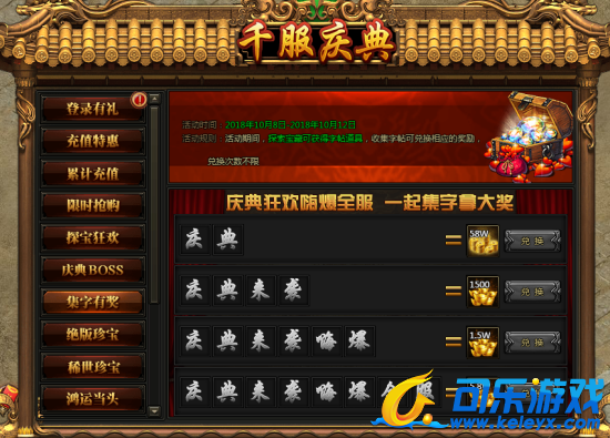 集齐庆典来袭嗨爆全场兑换58000元宝