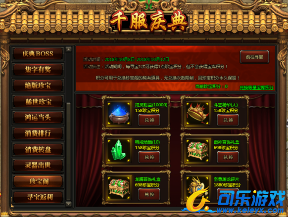 活动内容:活动期间,可用珍宝积分兑换珍宝阁稀有道具!