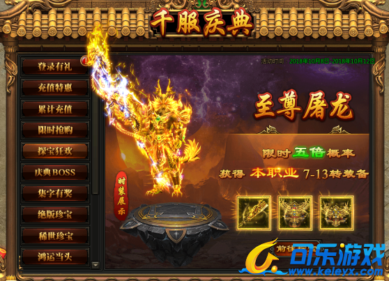 活动奖励:鸿运武器、鸿运战甲、鸿运当头称号、幻形水晶、至尊屠龙碎片