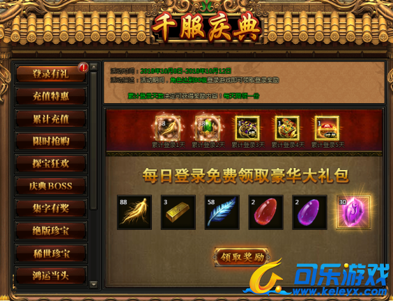 活动规则:活动期间,每天充值达到相应金额,可领取对应档次的豪华礼包!