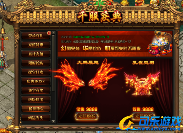活动内容:活动期间,华丽炫酷翅膀限时出售,每对翅膀每人限购一次!