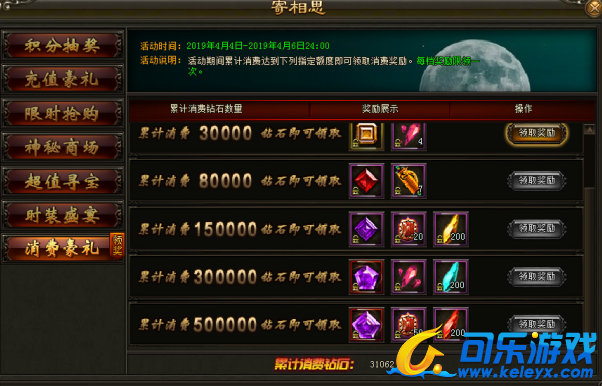 3. 有两档奖励可领取:2000钻石、20000钻石。每档都有丰厚豪礼免费领取。