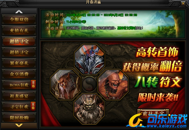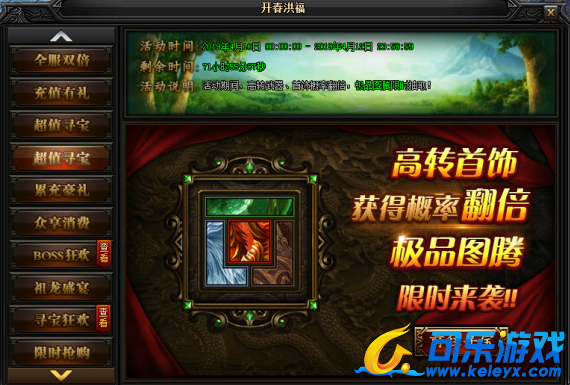 2,活动说明:活动期间,高转武器、首饰概率翻倍,极品图腾限时抽取!