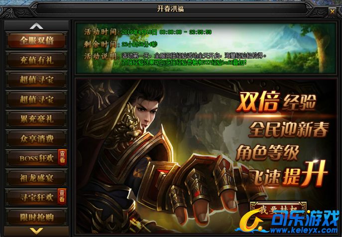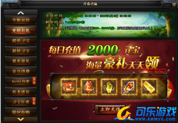 活动说明:活动期间,每日充值满2000、20000元宝!还能领取超值豪华大礼