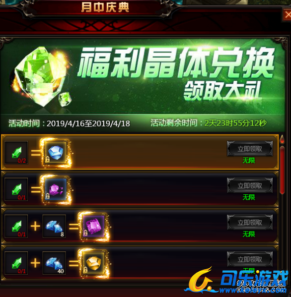 活动内容:玩家在日常挂机击杀小怪可获得小晶体,击杀野外BOSS、黄金BOSS、魔王BOSS都可获得中晶体,使用不同晶体及钻石比例可兑换游戏中稀有道具,详情请根据游戏中活动兑换页面为准。