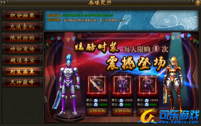 2. 活动期间内,玩家可购买绝版活动时装,每个玩家限购一次
