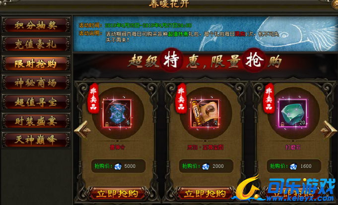2. 活动期间内,神秘商场每日刷新各种珍稀道具,打折出售限量抢购。