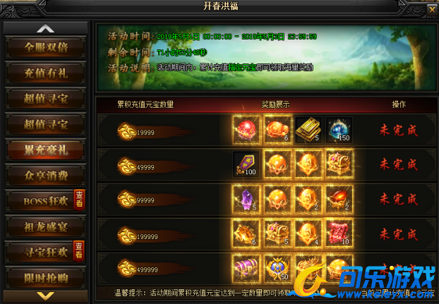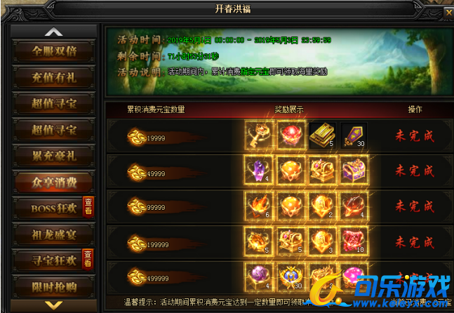 活动说明 : 活动期间内,累计消费指定元宝即可领取海量奖励