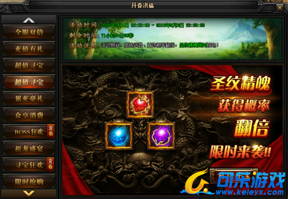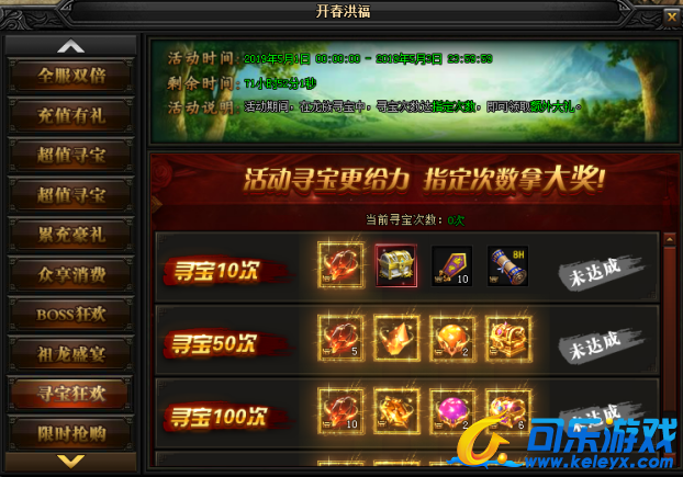 活动说明:活动期间,在龙族寻宝中,寻宝次数达指定次数,即可领取额外大礼。