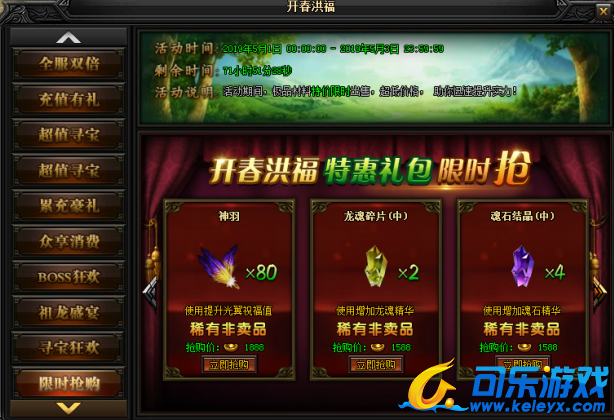 活动说明:活动期间,极品材料特价限时出售,超低价格,助你迅速提升实力!