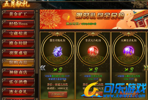 1.活动期间,玩家可在活动面板购买限购商品;(可翻页)