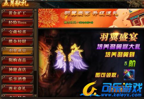 1.活动期间,玩家羽翼只需达到5级,即可领取一定数量的羽毛;