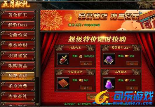 1.活动期间,玩家可在神秘商店中购买商品,商品可用金币,绑元,元宝进行购买;