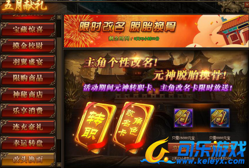 1.活动期间,玩家可在活动面板中购买元神转职卡,让元神脱胎换骨;
