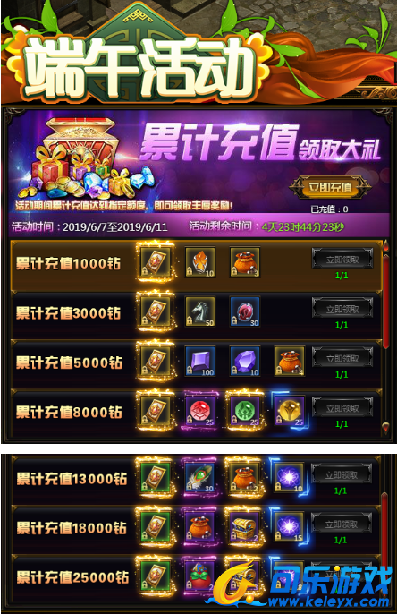 活动内容:活动时间内,玩家每日充值达到1000钻,即可获得丰厚奖励,boss卡、寻宝券、皮皮虾坐骑幻化等着你!