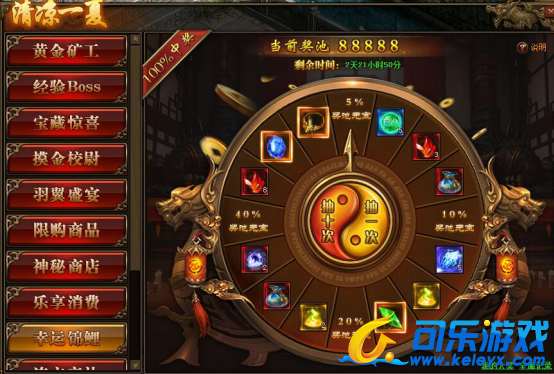 1.活动开启后奖池内默认存入88888元宝,每抽奖1次可使奖池内增加100元宝