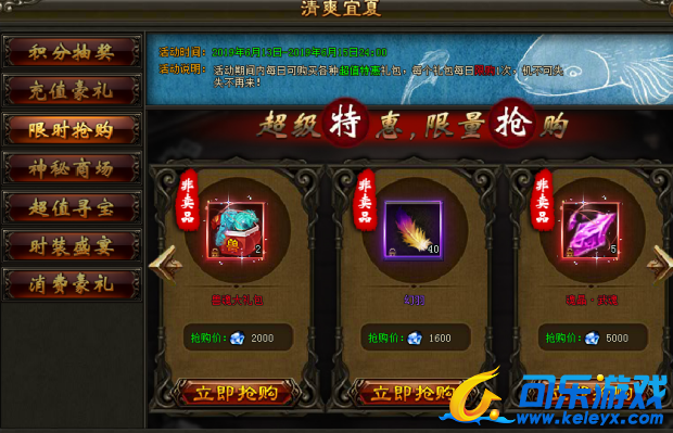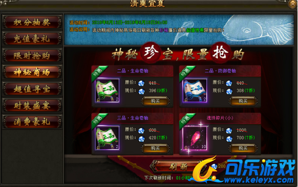 2. 活动期间内,神秘商场每日刷新各种珍稀道具,打折出售限量抢购。