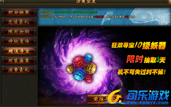 1. 活动期间,王之宝藏可抽取灭神装备!高级装备概率翻倍!活动限时3天,机不可失过时不候