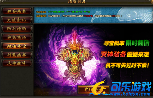 1. 活动期间,王之宝藏可抽取灭神装备!高级装备概率翻倍!活动限时3天,机不可失过时不候