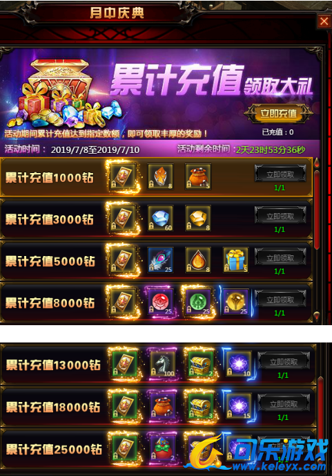 活动内容:玩家在活动时间内,累计充值达到一定钻石即可获得丰厚礼品,神翼技能包等你来拿!(领完累计充值奖励还可以去夏日炎炎活动中领取充值领奖奖励哦,一份充值两份奖励)