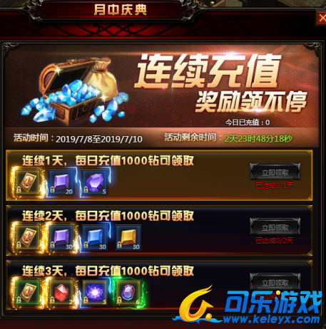 活动内容:活动时间内,玩家每日充值达到1000钻,即可获得丰厚奖励,boss卡、化灵石等着你!