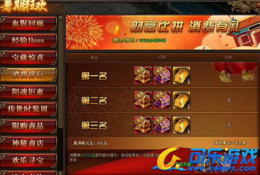第三名:名列前茅自选宝箱,传世灵器自选宝箱*1,金条(300w)*2;