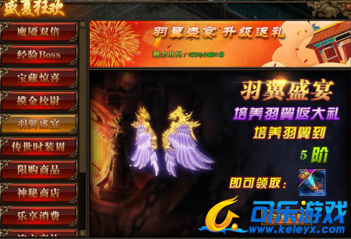 1.活动期间,玩家羽翼只需达到5级,即可领取一定数量的羽毛;