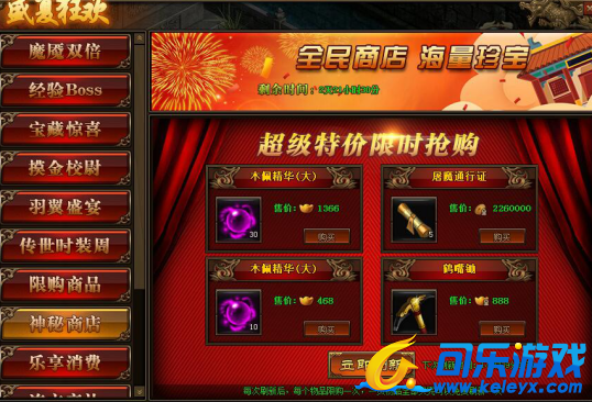 1.活动期间,玩家可在神秘商店中购买商品,商品可用金币,绑元,元宝进行购买;