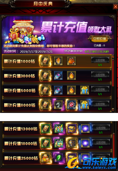 活动内容:玩家在活动时间内,累计充值达到一定钻石即可获得丰厚礼品,终极卡片选择包、清凉盛夏时装等你来拿!